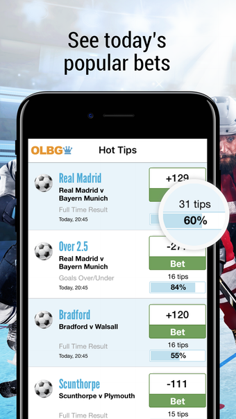 OLBG의 스포츠 베팅 팁을 통해 사용자는 전문 팁스터들의 인기 팁에 접근할 수 있습니다. 이 앱은 자체 연구를 수행하는 시간과 노력을 절약하기 위해 자세한 연구와 의견을 제공합니다.